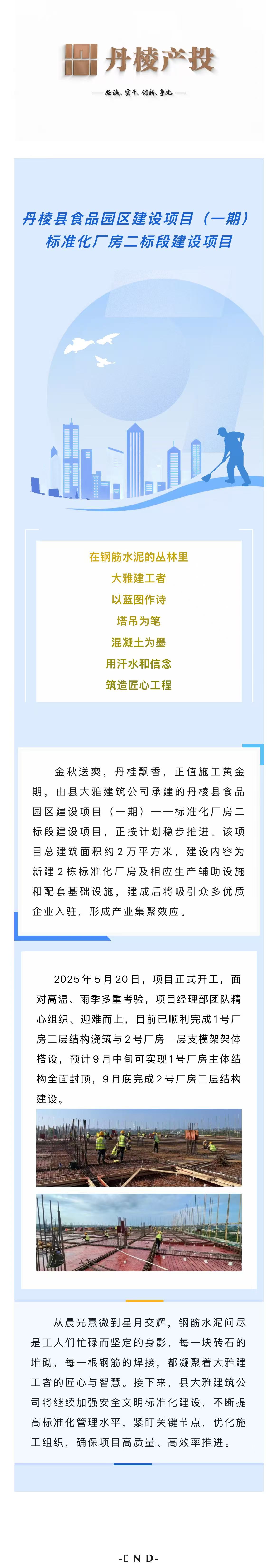 【縣大雅建筑公司】丹棱縣食品園區(qū)建設(shè)項(xiàng)目(一期)——標(biāo)準(zhǔn)化廠房二標(biāo)段建設(shè)項(xiàng)目穩(wěn)步推進(jìn)