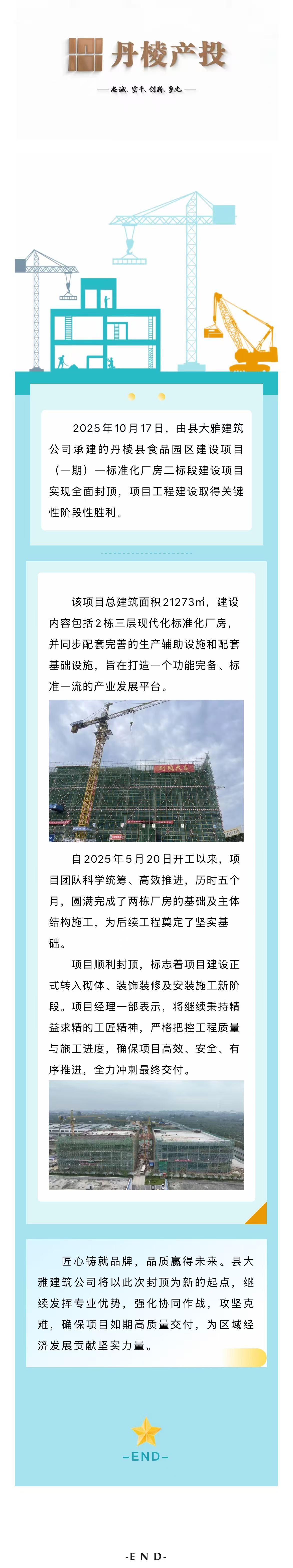 【縣大雅建筑公司】丹棱縣食品園區(qū)建設項目(一期)—標準化廠房二標段建設項目順利封頂