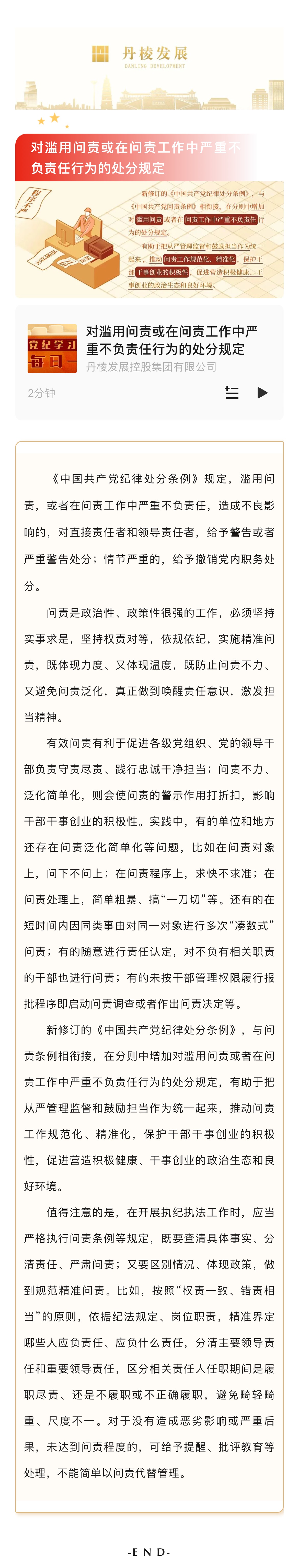 【黨紀(jì)學(xué)習(xí)教育】每日一課丨對(duì)濫用問責(zé)或在問責(zé)工作中嚴(yán)重不負(fù)責(zé)任行為的處分規(guī)定
